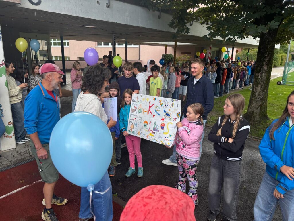 Sonja Bieri – Hauswartin, Managerin und Herzensmensch – wurde von der ganzen Schule herzlich verabschiedet. Sie beginnt im Oktober eine neue Herausforderung als MPA. Häb dr Sorg und merci für aues wo du gmacht hesch für üs!